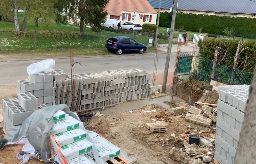Sur ces fondations, UPHEO a réalisé un muret de renfort destiné à retenir la terre du terrain situé en surplomb. L’élévation a ensuite été poursuivie en parpaings traditionnels, avec la mise en place de poteaux en béton armé tous les 3 mètres, descendus à une profondeur d’environ 3,50 m.